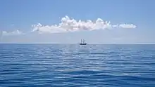 which comes to almost exactly six metres. The observer can therefore see that part of the ship that is more than six metres above the level of the water. The part of the ship that is below this height is hidden from him by the curvature of the Earth. In this situation, the ship is said to be hull-down.
