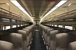 ![]() The interior of a coach on the Amtrak Cascades in 2020. | |