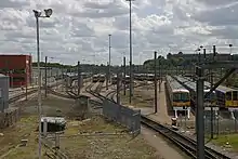 Facilities include a wheel lathe, large maintenance shed with lifting facilities and a train-washing plant, and extensive stabling sidings for Great Northern's commuter stock.[18]