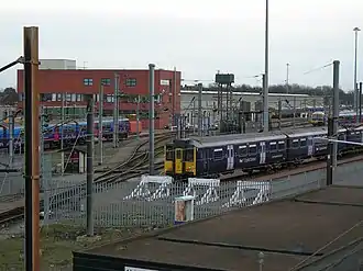 In the 1970s the site was extensively rebuilt; part of the Ferme Park sidings south of the shed was cleared, and a new Electric multiple unit depot constructed;[17][map 4] the work was done as part of the Great Northern electrification; a new maintenance shed was constructed with six roads, each capable of holding an eight-car train. At the same time the old loco shed was converted to use as an Overhead Line (OHL) maintenance depot, stabling an OHL repair train. [16][18]