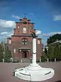 A memorial to the victims of political repressions and the Exaltation of the Holy Cross Church.