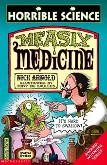 Horrible Science is a similar series of books to Horrible Histories, written by Nick Arnold (with the exception of Evolve or Die, which is written by Phil Gates), illustrated by Tony de Saulles and published in the UK and India by Scholastic. They are designed to get children interested in science by concentrating on the trivial, unusual, gory, or unpleasant. The books are in circulation in 24 countries, and over 4 million books have been sold in the UK alone.[1]