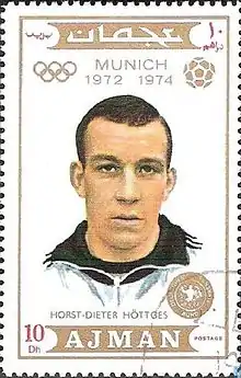Horst-Dieter Höttges (born 10 September 1943) is a German former footballer who played as a defender.[1] Having started his career with hometown club Borussia Mönchengladbach, he spent most of his career with Werder Bremen. At international level, he represented West Germany from 1965 to 1974, amassing 66 caps and scoring 1 goal.