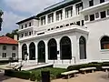 The Army and Navy General Hospital (now the Rehabilitation Center) was also supplied with water from the springs. It is located behind the south end of Bathhouse Row along the base of Hot Springs Mountain. It was administered by the War Department for the benefit of military members, officers of the Public Health Service, and honorably discharged veterans. The waters of the hot springs had an established reputation in benefiting. Admission to the hospital was reserved for cases "of a serious and obstinate character, which, though resisting ordinary methods of relief, were promised a rapid and permanent recovery from the use of the waters of the spring."[8]