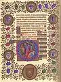 The Hours of Giangaleazzo Visconti is a Roman-liturgy illuminated Book of Hours that was commissioned by the ruler of Milan, Gian Galeazzo Visconti, in Italy in the late 14th century.[1] A Book of Hours is a personal prayer book that contained, in part, the Hours of the Virgin, a daily devotional that was popular at the time. This particular Book of Hours was created by two master illuminators, beginning with Giovannino dei Grassi before his death, and completed by Luchino Belbello da Pavia.[2]