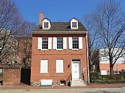 House at 9 North Front Street is a historic home located in the Jonestown Historic District in Baltimore, Maryland, United States. It is a 2 1⁄2-story brick townhouse with a 2-story rear wing. It is three bays wide and two rooms deep. The main house features a gable roof with two dormers on each side and two interior chimneys connected by a parapet. The house is located at 9 North Front Street and was built by either John Beale Bordley or Charles Torrence circa 1790. The house was the residence of Thorowgood Smith, second Mayor of Baltimore (1804-1808). It rests on an area of downtown Baltimore traditionally known as “Old Town”. Even earlier on, it was known as “Jones Town”. This area was annexed to Baltimore in 1745 and its settlement predates that of Baltimore Town. More specifically, the house is located in a neighborhood known today as Shot Tower Park. Once part of a whole row of Conservative Conservative Georgian style brick masonry 2 1⁄2-story townhomes, this house is the last extant example on the street, and one of just a few 18th century townhouses remaining in all of Baltimore.[2]