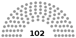 The House of Elders has 102 members. One-third (34) are elected by district councils (one per province) for three-year terms, one-third (34) by provincial councils (one per province) for four-year terms, and one-third (34) are nominated by the president for five-year terms. However, elections for the district councils were not held in the 2005 parliamentary elections. As such, each provincial council also selected one of its elected members to temporarily hold seats in the house until district council elections are held. Half of the presidential nominees have to be women, two representatives from the disabled and impaired and two from the Kuchis.[2]