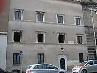 Originally located in Borgo Nuovo 106-107,[2] it was the residence of Febo Brigotti, a physician in the service of Pope Paul III (but according to Ludwig von Pastor of Pope Leo X)[2] in the first half of the 16th century.[3] On Borgo Nuovo the house, which had been erected before the construction of Borgo Nuovo in 1499,[4] bordered to the west the Palazzo Jacopo da Brescia.[2] The current building is a reconstruction of the original, demolished along with the rest of the Spina di Borgo in the 1930s during the works for the opening of Via della Conciliazione.[3]