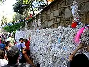 Outside the shrine is a particular "wishing wall" which pilgrims have used by tying their personal intentions on paper or fabric. Various types of florals and fruits are grown nearby, and additional lighting has been installed within the vicinity of the shrine for further monitoring of the site. A water fountain or well is also located nearby, believed by some pilgrims to have miraculous powers of healing or fertility.