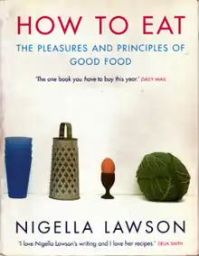 How to Eat is a 1998 book of English cuisine by the celebrity cook Nigella Lawson.[1] It features culinary tips on preparation and saving time,[2] and sold 300,000 copies in Britain.[3] It was praised by critics as a valuable guide to cooking.