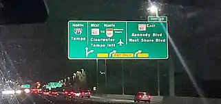 A reconstruction project was planned to begin in 2017 for the new Gateway Expressway project, a plan to build a new toll road to connect different parts in Pinellas County. However, FDOT planned to reconstruct the interstate in smaller phases rather than the original larger two-phase project and was delayed to 2020. Once the reconstruction project is finished in 2024 or 2025, major traffic congestion on the Howard Frankland is expected to be significantly reduced.[7] On January 7, 2021, FDOT postponed to January 16 due to an unforeseen delay in arrival, needed of bridge equipment. It was scheduled to shut down by 8 p.m., EST, January 9, through January 10. This work was part of the U.S. $600 million toll road project.[8] On January 16 to 17, workers removed the 4th street north interchange bridge from 8 p.m. on January 16, to 12 p.m. on January 17. Exit 32 will remain closed until Late 2021 for workers to build a new exit ramp that will help accommodate the future of Interstate 275.[9]
