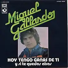 "Hoy Tengo Ganas de Ti" (English: "Today I Have Desire for You ") is a song written and performed by Spanish singer-songwriter Miguel Gallardo. It was released in 1976 as the lead single from his debut studio album Autorretrato. The song is about a man who tells of his yearnings to a woman who has left. Upon its release, the song was well received in Mexico where it became one of the best-performing songs of the year. Since then, the song has been covered by several artists including Azúcar Moreno, Ricardo Montaner, David Bustamante and Alejandro Fernández.