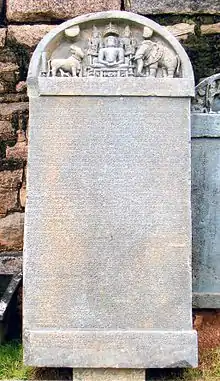 The support of the Hoysala rulers for the Kannada language was strong, and this is seen even in their epigraphs, often written in polished and poetic language, rather than prose, with illustrations of floral designs in the margins.[39] In addition to the Hoysala patronage, royal support was enjoyed by Kannada poets and writers during this period in the courts of neighbouring kingdoms of the western Deccan. The Western Chalukyas, the Southern Kalachuris, the Seuna Yadavas of Devagiri and the Silharas of Kolhapur are some of the ruling families who enthusiastically used Kannada in inscriptions and promoted its literature.[39][40][41][42]
