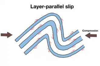 Not until the Late Jurassic to Early Cretaceous did Huangling massif uplift. This period is critical for the tectonic development of Huangling massif since the dome-shaped structure was formed. The dome-shaped structure indicated a compressional environment. The dome has a steeper west flank and a gentle east flank, indicating the compressive stress exerted to the west and to the east were different. Coevally, recumbent folds trending north-south overturning to the west and east on the western and eastern flanks respectively, and layer-parallel slip were formed.[3] In the next session, different models suggesting the kinematics of the dome-shaped structure will be further discussed.