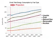 Doug Reynolds predicted in 2005 that the North American peak would occur in 2007.[25] Bentley predicted a world "decline in conventional gas production from about 2020".[26]