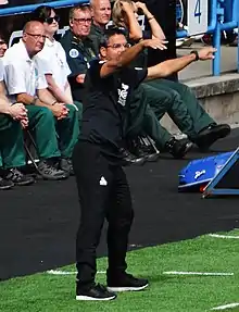 The team finished 16th and stayed up on their return,[82] but were relegated after a 20th-place finish in 2018–19.[83] Wagner left the club by mutual consent in January 2019, and was replaced by Borussia Dortmund II manager Jan Siewert,[84] but Town were relegated in March with six matches remaining.[85] The team amassed only three wins and 16 points by the end of the season.[83] Chairman Hoyle announced his departure in May 2019, selling the club to businessman Phil Hodgkinson, relinquishing the post due to poor health.[86] Siewert was replaced by Lincoln City manager Danny Cowley in September of that year,[87] who guided the club to survival in the Championship before being sacked.[88] Leeds United assistant coach Carlos Corberán was appointed as the club's new head coach in July 2020.[89]