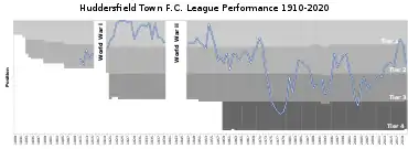 Huddersfield were the first team to have played at each of the four professional levels of English football at two different grounds.[6]