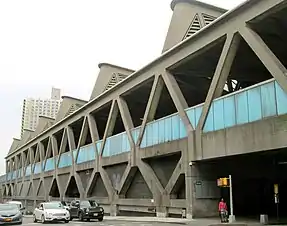 The George Washington Bridge Bus Terminal, at West 179th Street and Fort Washington Avenue, was designed by the Italian architect and economist Pier Luigi Nervi and constructed in 1963. From a distance, the huge ventilation ducts look like concrete butterflies.[82] Nervi's bust sits in the terminal's lobby. The station has been undergoing a renovation and is expected to re-open in the summer of 2015. Over 100,000 square feet of new shops will be included in the updated station.[8]