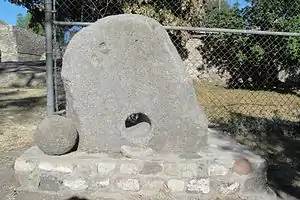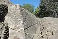 Ehécatl round temple probably used for ceremonial purposes, measuring some 15 meters in diameter. The structure has three stacked concentric round stages.[1]