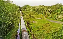 Disused trackbed in 1995, in use as route for a conveyor belt