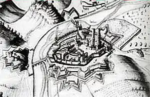Feeling their survival was at stake, the Huguenots gathered in La Rochelle on 25 December. At this Huguenot General Assembly in La Rochelle the decision was taken to forcefully resist the Royal threat, and to establish a "state within the state", with an independent military commandment and independent taxes, under the direction of the Duc de Rohan, an ardent proponent of open conflict with the King.[1] In that period, the Huguenots were very defiant of the Crown, displaying intentions to become independent on the model of the Dutch Republic: "If the citizens, abandoned to their guidance, were threatened in their rights and creeds, they would imitate the Dutch in their resistance to Spain, and defy all the power of the monarchy to reduce them." (Mercure de France)[2]