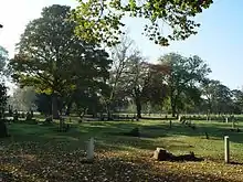 In 1854 an act allowed incorporation of the company, and allowed it to expand.[3][7][note 4] Intramural burial were abolished in Hull after 1856/7.[9] In 1855 Quakers took a 999-year lease on a plot of ground within the cemetery.[map 4] Several prominent Quakers were later buried in the ground including persons from the prominent local employers of the Reckitt, and Priestmann families.[10] By 1864 the cemetery occupied around 20 acres (8.1 ha), and contained over 10,000 interments.[11]