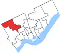 ![]() Humber River-Black Creek in relation to the other Toronto ridings (2013 boundaries) | |||