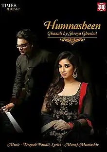 Humnasheen - Ghazals by Shreya Ghoshal is the first ghazal album of singer Shreya Ghoshal. Shreya has spent the two years working on this album and has described it as "A heartfelt humble effort from me to revive pure form. of ghazals." The music to this album has been composed by Deepak Pandit, with lyrics from Manoj Muntashir.[1]