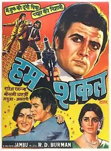 Humshakal (transl. Lookalike) is a 1974 Hindi-language film directed by Jambulingam. The film stars Rajesh Khanna, Tanuja, Moushumi Chatterjee, Asrani and Aruna Irani. The music was by Rahul Dev Burman and lyrics were by Anand Bakshi. The film was a remake of the 1970 Kannada film Baalu Belagithu, which was also remade in Telugu as Manchivadu (1973) and in Tamil as Oorukku Uzhaippavan (1976).