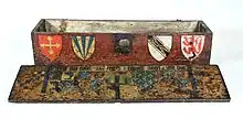 Gascony was not the only issue, in the 1330s France's support for Scotland caused problems for the English.[2] Loyalties in the low countries were split. In Flanders the towns were dependent on supplies of English wool, whereas the aristocracy supported the French king.[2] Another element was that of naval power. Philip had intended to go on a crusade and had assembled a fleet off Marseilles. These plans were abandoned in 1336 and the fleet moved to the English Channel off Normandy in an obvious act of provocation against the English.[5] One of Edward's influential advisers was Robert III of Artois. Robert was an exile from the French court, having fallen out with Philip VI over an inheritance claim. In November 1336 Philip issued an ultimatum to the seneschal of Gascony threatening that if Robert of Artois was not extradited to France then great peril and dissension would follow.[5][6] When Philip confiscated the English king's lands in Gascony and the county of Ponthieu the following year, he laid emphasis on the case of Robert of Artois as one of the contributing causes.[5]
