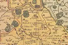 Elmbridge appears in the Domesday Book of 1086 as Amelebrige an area used for strategic, secular purposes with a Hundred Court where local wealthy and powerful figures met about once a month.[1] It also had in early centuries a small number of owners who attempted to charge and collect rent of all of the owners of the main manageable medieval asset in the country, the manors.