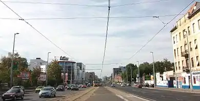 Hungária körgyűrű (lit. Hungary beltway or Hungary boulevard) is the longest and busiest boulevard, also the widest city street in Budapest, Hungary. It's 13 km long and has 6-10 traffic lanes with a rapid tram line on the median of the boulevard. It consists of three parts: Róbert Károly körút, Hungária körút and Könyves Kálmán körút.