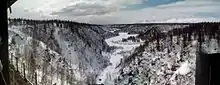 The Hurricane Gulch Bridge is a 918 ft (280 m) long steel arch railroad bridge that crosses Hurricane Gulch, Alaska. It is located at milepost 284.2, counting from Seward. At 296 ft above the Hurricane creek, it is both the longest and tallest bridge on the entire Alaska Railroad. Many of Alaska Railroad's passenger routes pass over this bridge, including the Denali Star, the Aurora Winter and the flag-stop Hurricane Turn, in addition to freight routes.[1][2]