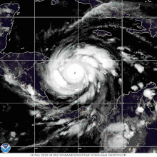 ![]() Hurricane Iota at peak intensity approaching Nicaragua on November 16 | |
