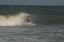 As an extratropical cyclone, Noel interacted with high pressure building in from the northwest, forming a tight pressure gradient that produced moderate winds along the Outer Banks of North Carolina, primarily on November 2. At Cedar Island, sustained winds of 43 mph (69 km/h) were reported. Along the coast from Cape Lookout northward, gusts peaked at around 60 mph (97 km/h).[106] The storm produced strong waves, flooding North Carolina Highway 12 with up to 5 ft (1.5 m) of water and sand on November 3.[107] About 6,000 people lost power after winds knocked down a power line. Eight oceanfront properties were damaged,[108] and damage in North Carolina totaled $72,000 (2007 USD).[107] As Noel was tracking northward parallel to the U.S. East Coast, high winds affected several states.[109] Beach erosion was reported in New Jersey, in some cases eroding a 10 ft (3.0 m) vertical drop.[110] On Long Island, strong winds knocked down trees and power lines.[111]