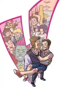 An announcement at the 2012 Dragon Con revealed that an exclusive digital comic book series, based on the newlywed sitcom Husbands, would be released on October 24, 2012, published by Dark Horse Comics, featuring art by Ron Chan, Natalie Nourigat, M. S. Corley, Benjamin Dewey and Tania del Rio.[1][2][3] In early 2013, a hardcover edition was released,[4][5] featuring an introduction by Neil Gaiman.[6]
