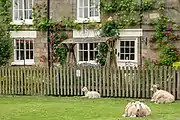 The stream Hutton Beck wends its way through the middle of the village, criss-crossed by footpaths and wooden bridges.[12] One of the bridges was replaced in 2002 by the North York Moors National Park Authority when pedestrian traffic across increased dramatically, after the village green was designated as a right of way.[13] The stream splits the village green, whose grass is kept short by sheep.[14] Hutton Beck flows into the River Rye via Catter Beck and the River Seven.[15]