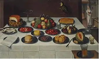 Huybrecht Beuckeleer, Huybrecht Beuckelaer or the Monogrammist HB[1] (Antwerp, 1535/40 – possibly in England, after 1605 and before 1625) was a Flemish painter who is mainly known for his genre paintings, still lifes and portraits. He was trained in Antwerp and also worked in Italy, France and England. In England he was court painter to Robert Dudley, 1st Earl of Leicester.[2]