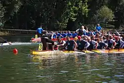 The Hybrid Exit is a special move to take the paddle out of the water in dragon boat racing sport. It was initially developed and trained in Canada.