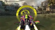 The boat selection was lauded by critics, praising their uniqueness and selection of alternate skins.[35] Course design also received acclaim. 1UP's Bob Mackey called the over-the-top course design "like rides at Disneyland."[30] In its preview of the game at PAX East, the reporter from Critical Gamer called the course design "really smart" and said that there were a "good balance of safe paths, risky shortcuts, and chains of boost power-ups."[49] Official Xbox Magazine UK's reviewer cited "there's a brilliant playfulness to the level design."[40] They further noted the usefulness of the Ring Master mode in guiding the player to some of the game's shortcuts.[40] Critics enjoyed the longevity of the game, noting that between the courses and game types the replay value is greatly increased.[40] Noble McKinley of GamePro praised the game's graphics, calling the scenery "downright gorgeous" and further went on to call the lighting and water effects "quite impressive."[34] GameSpot's Justin Calvert felt the game's leaderboard system was a great asset to the game.[35]