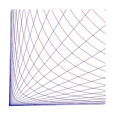 Taking (e, 1/e) as the vertex of rectangle of unit area, and applying again the squeeze that made it from the unit square, yields Generally n squeezes yields A. A. de Sarasa noted a similar observation of G. de Saint Vincent, that as the abscissas increased in a geometric series, the sum of the areas against the hyperbola increased in arithmetic series, and this property corresponded to the logarithm already in use to reduce multiplications to additions. Euler’s work made the natural logarithm a standard mathematical tool, and elevated mathematics to the realm of transcendental functions. The hyperbolic coordinates are formed on the original picture of G. de Saint-Vincent, which provided the quadrature of the hyperbola, and transcended the limits of algebraic functions.