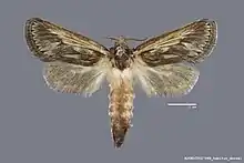The length of the forewings is 13–15.5 mm for males and up to 20 mm for females. Adults have been recorded on wing from May to September.[2]