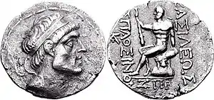 The Seleucids had suffered heavy defeats by the Iranian Parthian Empire; in 148/7 BC, the Parthian king Mithridates I (r. 171–132 BC) conquered Media and Atropatene, and by 141 BC, was in the possession of Babylonia.[7] The events are recorded in the Babylonian astronomical Diaries.[8] The menace and proximity of the Parthians caused Hyspaosines to declare independence.[2] In 127 BC, Mithridates I's son and successor Phraates II met an abrupt death during his war with the nomads in the east.[9][10] Hyspaosines took advantage of the situation by seizing Babylon, which is attested in Babylonian records, where he is recorded as king (šarru).[11] His rule over the city lasted briefly; at the start of November 127 BC, the Parthian general Timarchus recaptured it.[12]