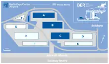 The new multi-purpose exhibition area, called Berlin ExpoCenter Airport adjacent to the BER was finished in time for ILA 2012. The main section of the grounds cover approximately 250,000 square metres.