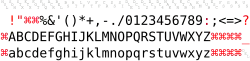 ![]() ISO 646 Invariant. Red Bowen knots (⌘) denote national code points. Other red characters are changed in noteworthy minor modifications. | |