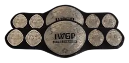 The IWGP Junior Heavyweight Tag Team Championship (IWGPジュニアタッグ王座, IWGP juniataggu ōza) is a professional wrestling tag team championship owned by the New Japan Pro-Wrestling (NJPW) promotion. "IWGP" is the acronym of NJPW's governing body, the International Wrestling Grand Prix (インターナショナル・レスリング・グラン・プリ, intānashonaru resuringu guran puri). The title was introduced on August 8, 1998, at a NJPW live event.[1] The IWGP Junior Heavyweight Tag Team Championship is not the only tag team title contested for in NJPW; the IWGP Tag Team Championship is also sanctioned by NJPW.[2] According to NJPW's official website, the Junior Heavyweight Tag Team Championship is listed as the "IWGP Jr. Tag Class", while the IWGP Tag Team Championship is considered the "IWGP Heavy Weight Class".[2] The title is contested for by junior heavyweight wrestlers; the weight-limit for the title is 100 kg (220 lb) per partner.[3] Being a professional wrestling championship, the title is won as a result of a predetermined outcome.