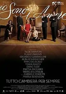 I Am Love (Italian: Io sono l'amore) is a 2009 Italian romantic drama film directed by Luca Guadagnino, set in Milan around the year 2000. Tilda Swinton plays the wife of a rich industrialist who has an affair with a chef. It is the first installment in Guadagnino's self-described Desire trilogy, preceding A Bigger Splash (2015) and Call Me by Your Name (2017). Producers Swinton and Guadagnino developed the film together over an 11-year period. The film's soundtrack uses pre-existing compositions by John Adams.[2]