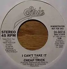 "I Can't Take It" is a song by the American rock band Cheap Trick, released in 1983 as the second single from their seventh studio album Next Position Please. The song was written by Robin Zander (his only solo credit on a Cheap Trick song) and produced by Todd Rundgren.[3]