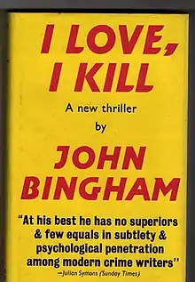 I Love, I Kill is a 1968 thriller novel by the British writer John Bingham.[1] Dodd Mead released it in America with the alternative title Good Old Charlie.