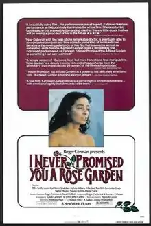 In the wake of the success of One Flew Over the Cuckoo's Nest, Roger Corman was able to get funding for a movie version of Rose Garden. Bibi Andersson played Dr. Fried, while Kathleen Quinlan played Deborah. All references to Judaism were removed, including the storyline of the vicious cruelty Deborah suffered from anti-Semitic peers, so that her childhood bout with urethral cancer becomes the sole reason for Deborah's "retreat from reality".